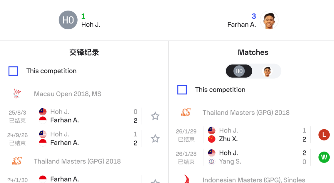 羽毛球賽事數據產品-比分數據