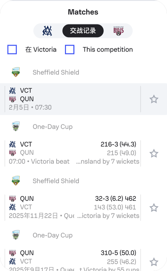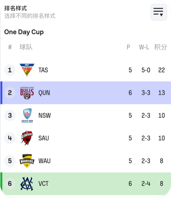 板球賽事數據產品-比分數據