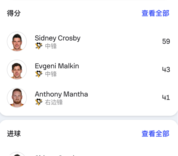 冰球賽事數據產品-比分數據